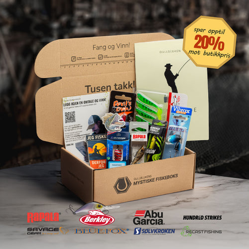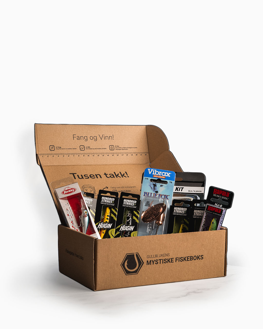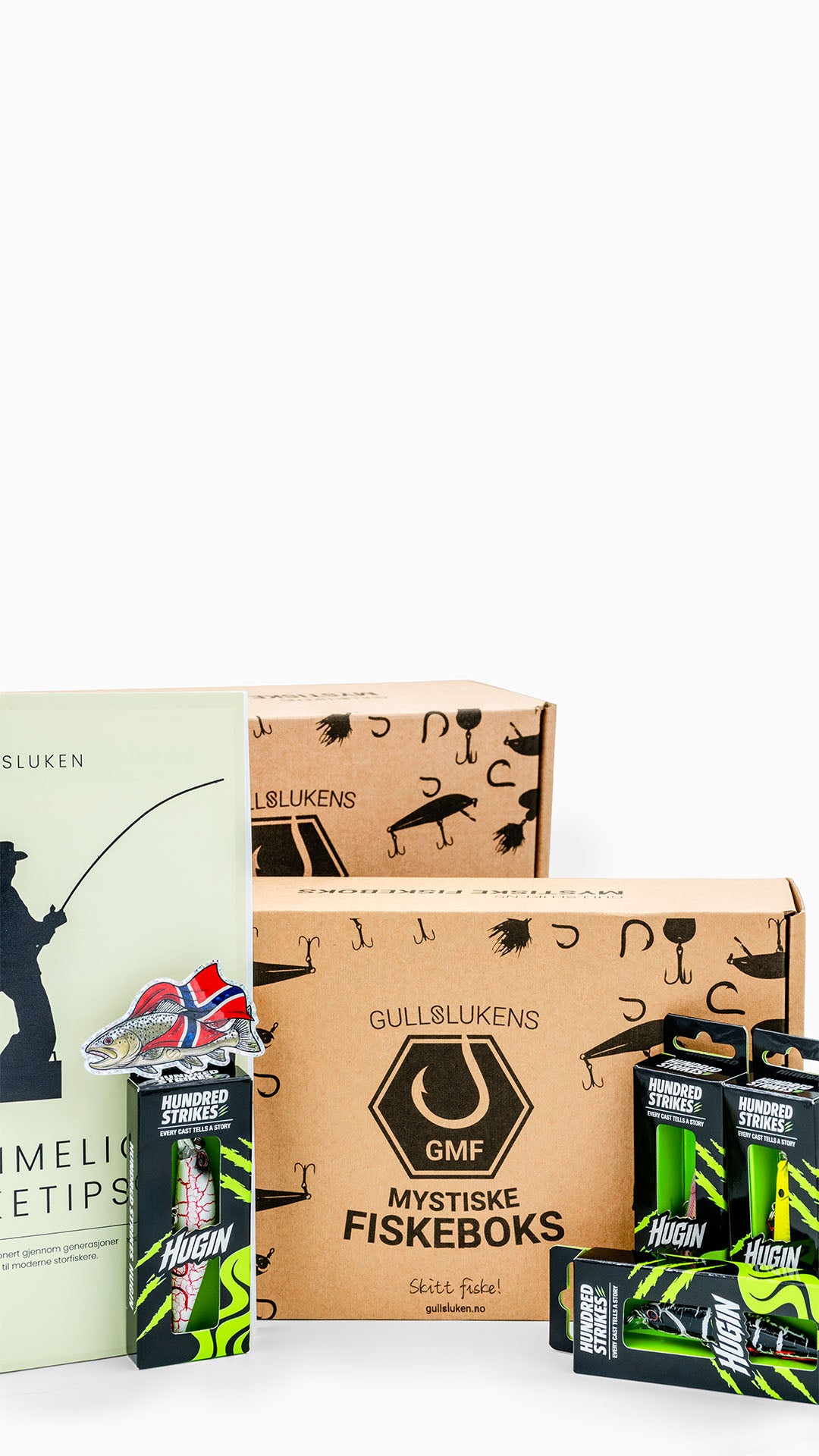 Her finner du to ting: Gullslukens Mystiske Fiskeboks og Hundred Strikes, slukserien vi lager selv. Du får mer fiskeglede, enklere valg og flere øyeblikk der snøret skriker.